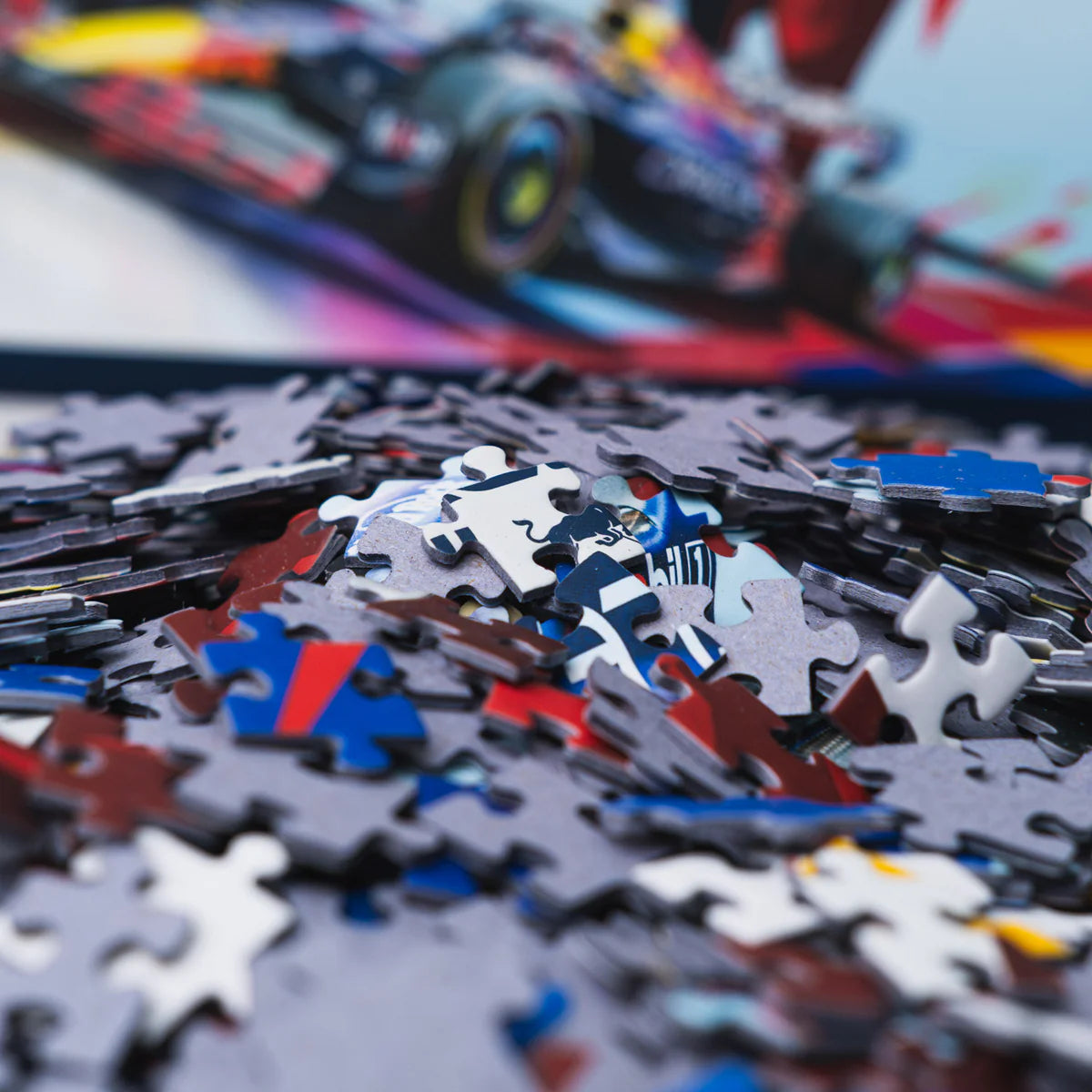 Relive the atmosphere of Red Bull’s home race with the Oracle Red Bull Racing | Austrian Grand Prix 2022 | Puzzle 1000 pcs, a 1000-piece premium set capturing the team’s car in full flight against the dramatic backdrop of Spielberg’s Red Bull Ring.
