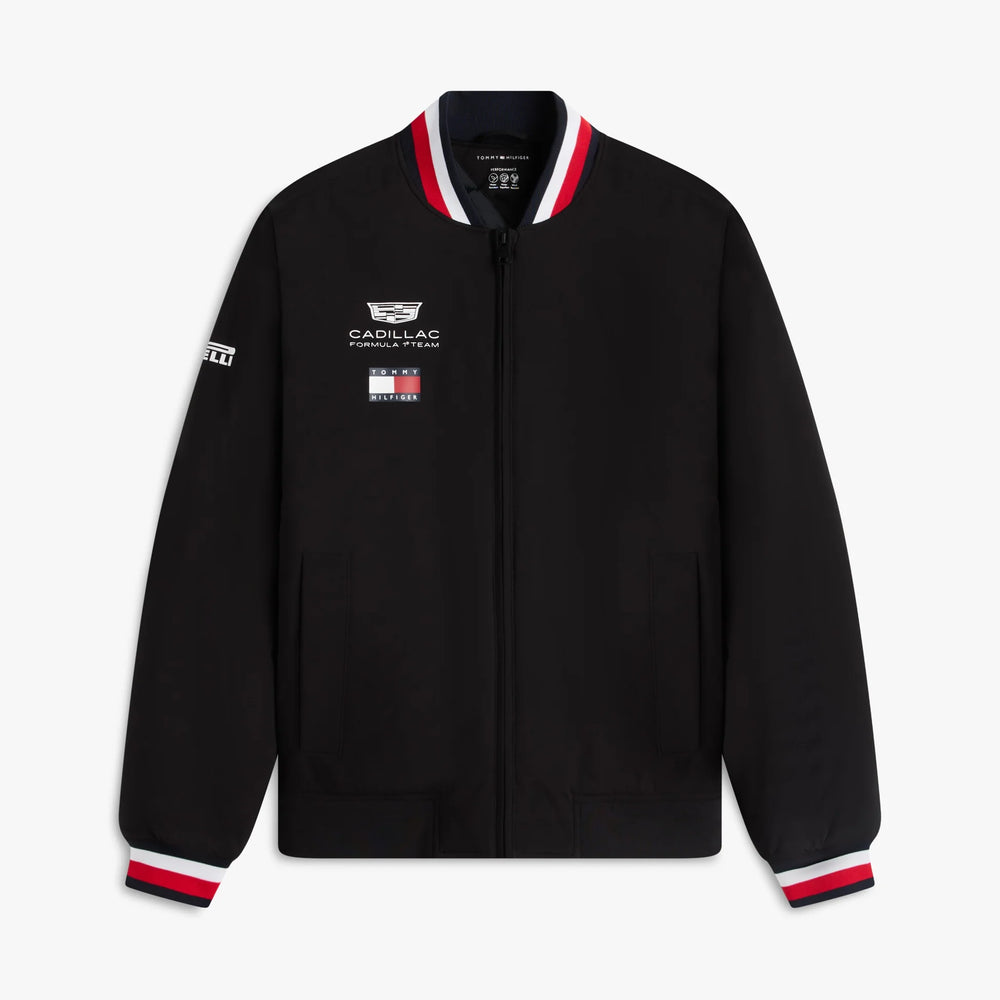 Introducing the Tommy Hilfiger x Cadillac Formula 1 Team Team Varsity Jacket, featuring co-branded graphics that celebrate the exclusive collaboration. This jacket is ideal for race weekends, streetwear looks, or everyday outfits.