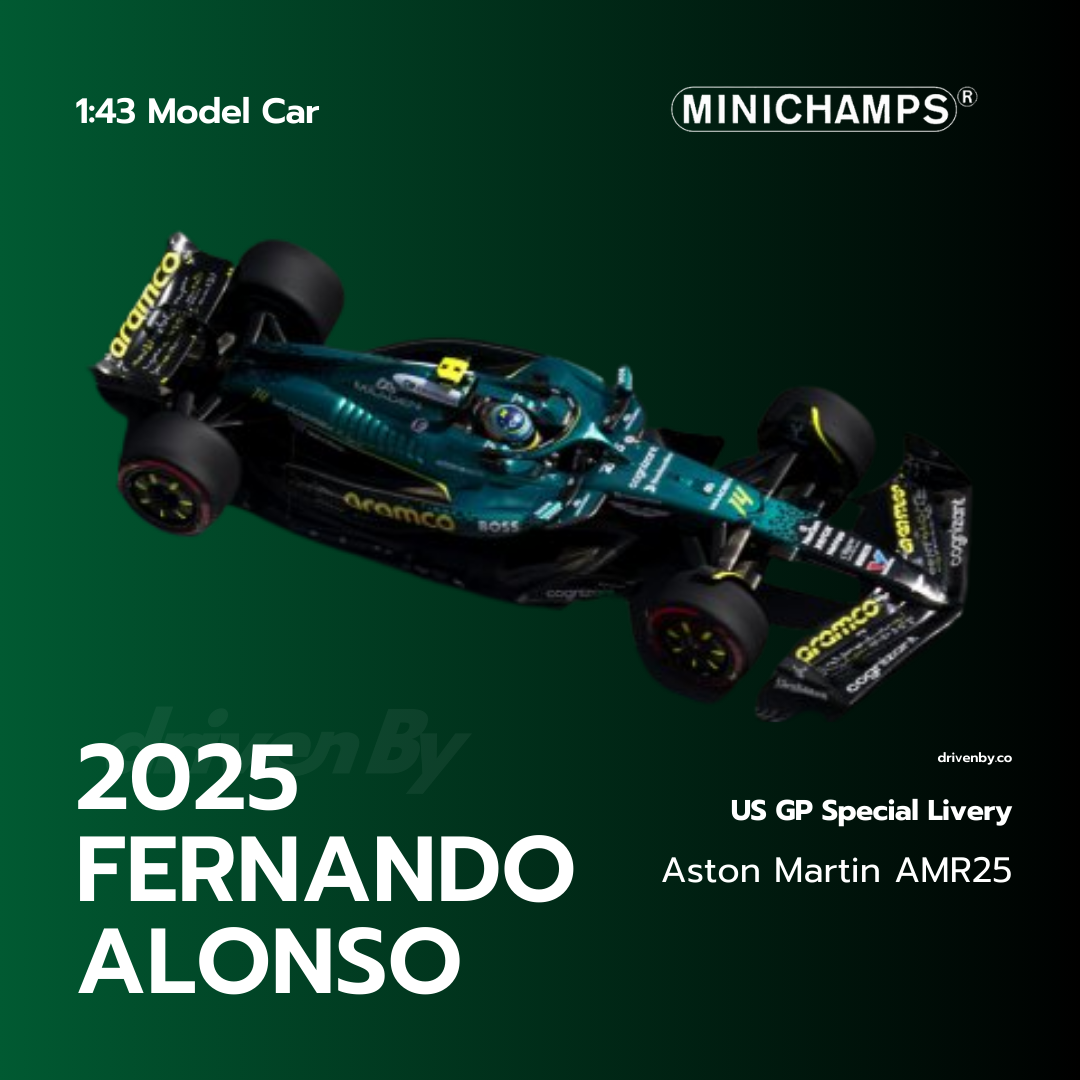 Fernando Alonso US GP Austin 2025 Aston Martin F1 Team AMR25 Special Livery - Minichamps Model Car