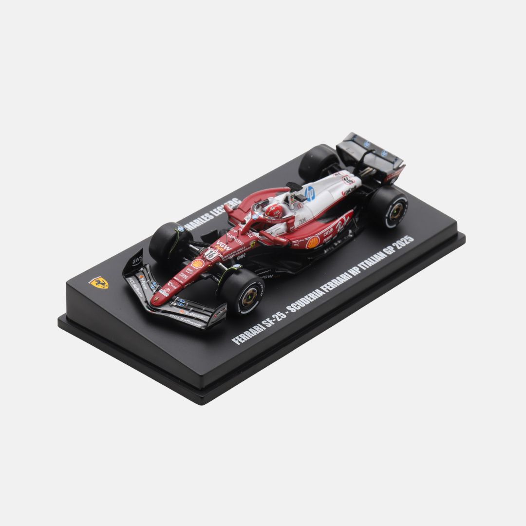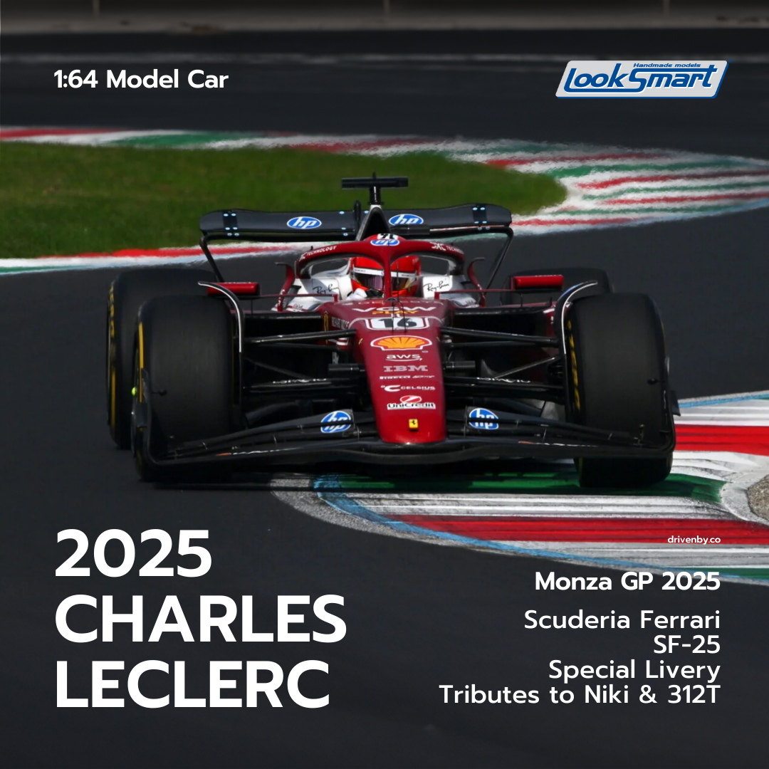 意大利大獎賽 ,法拉利復古拉花登場,紀念Niki Lauda 1975年駕駛312T奪得世界冠軍50週年!SF-25賽車披上鮮紅塗裝,搭配白色條紋、白色引擎蓋,重現當年經典鋁合金風采。車手Charles Leclerc與Lewis Hamilton的名字以手寫體呈現,復古黑白賽車編號更添懷舊氣息,致敬Lauda在蒙札奪冠的輝煌時刻。