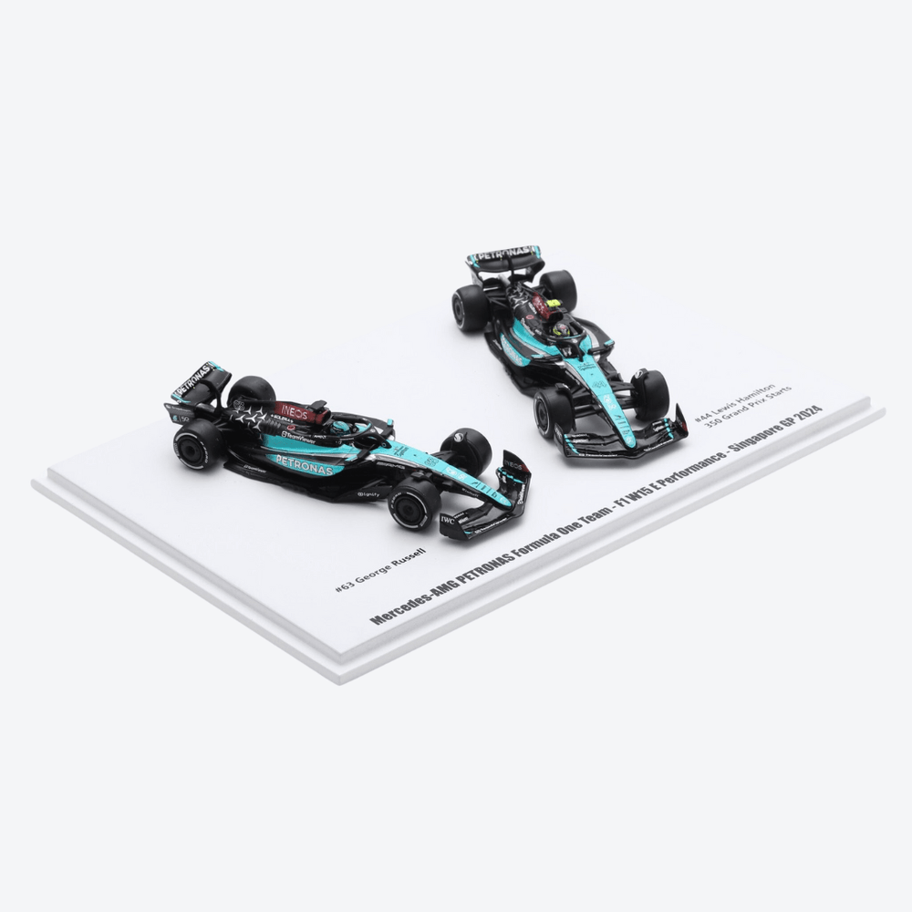 Mercedes AMG F1 W15 2024 F1 Model Car Set - Petronas 50 Years Singapore GP 2024 Special Livery - Lewis Hamilton & George Russell Model Car - Scale 1:64 Sparky